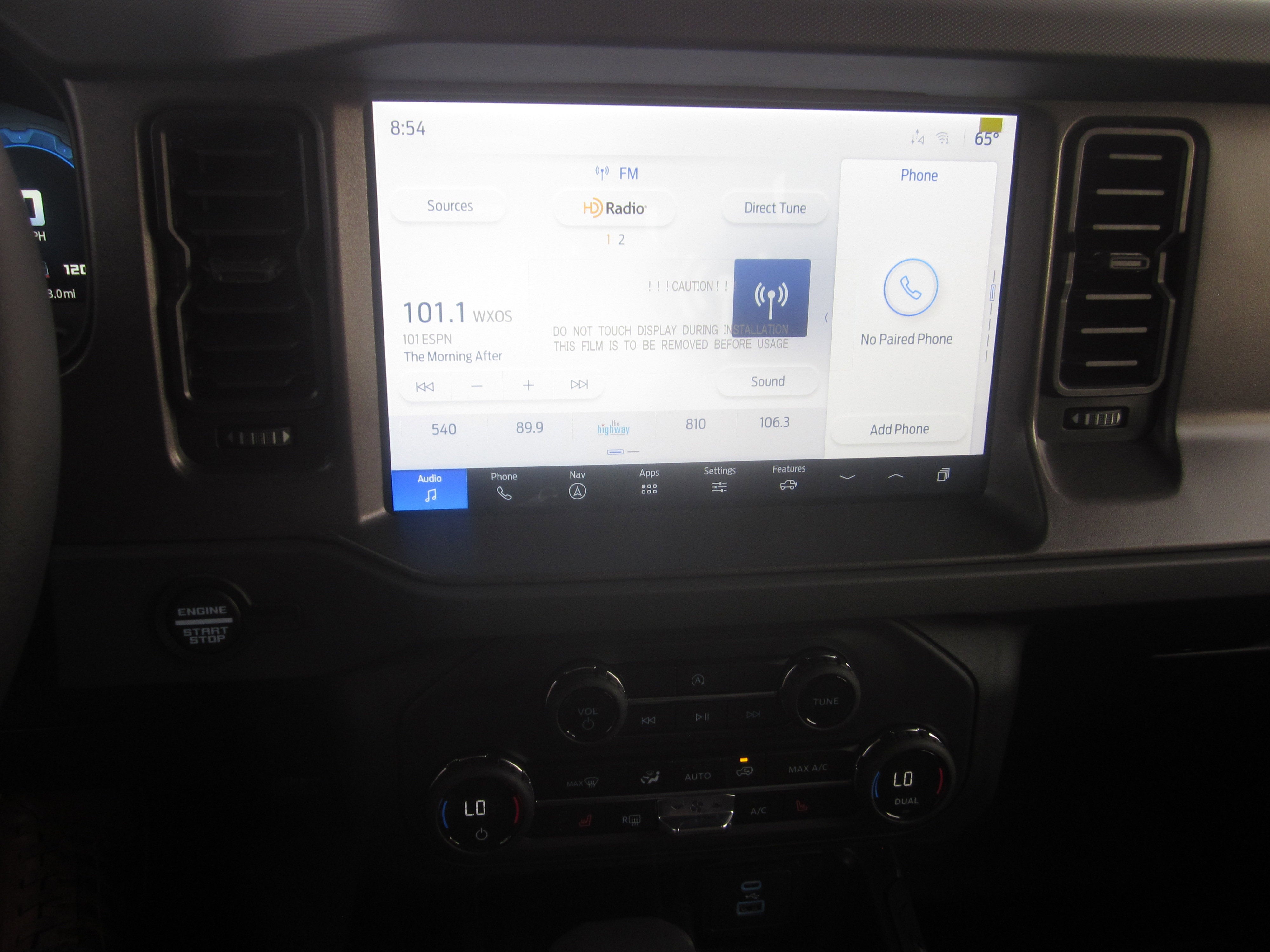 - EQUIPMENT GROUP 222A MID PACKAGE -inc: Rear Parking Sensors Power Outlet - Back Side of Center Floor Console Dual Smart Charging USB Ports Front Row Heated Seats Dr & Pass Illuminated Sliding Visor Vanity Mirrors Dual-Zone Electronic Automatic Temperature Control air conditioning Ford Co-Pilot360 Enables compatibility w/FordPass performance app w/off-road navigation Auto High-Beam Headlamps Pre-Collision Assist w/Automatic Emergency Braking pedestrian detection forward collision warning and dynamic brake support Blind Spot Information System (BLIS) Cross-Traffic Alert Rear View Camera backup assist grid lines Lane-Keeping System Lane-Keeping Alert Lane-Keeping Aid and Driver Alert Connected Navigation 1-year subscription pinch-to-zoom capability live traffic predictive destinations and route guidance and One Box search Navigation services require SYNC4 and FordPass Connect complimentary connect service and the FordPass app (see FordPass terms for details) Cu