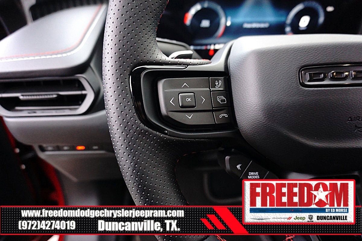 Big cash and no payments for 90 days! Our only Dealership add is GREAT CUSTOMER SERVICE. Real Deals, No Games and No Surprises. Price Includes only Rebates EVERYONE Qualifies for. We Make it Easy No Games. Equipped with Blacktop Package (Dark Exterior Badging, Dual Rear Exhaust with Black Tips, and Wheels: 20 x 10 Dark Finish Aluminum), Quick Order Package 22P Scat Pack, Two Tone Paint Group, AWD, Black Artificial Leather, 10 Speakers, 2-Way Manual Adjust Front Head Restraints, 2-Way Power Driver Lumbar Adjust, 4-Wheel Disc Brakes, 4G LTE Wi-Fi Hot Spot, 8-Way Power Driver Seat Adjust, ABS brakes, Active Noise Control System, Air Conditioning, Alloy wheels, AM/FM radio: SiriusXM w/360L, Apple CarPlay/Android Auto, Auto-dimming Rear-View mirror, Automatic temperature control, Black Seats, Brake assist, Bumpers: body-color, Compass, Connectivity - US/Canada, Delay-off headlights, Disassociated Touchscreen Display, Driver door bin, Driver vanity mirror, Dual front impact airbags, Dual front side impact airbags, Electronic Stability Control, Emergency communication system: Dodge Connect, Four wheel independent suspension, Front anti-roll bar, Front Bucket Seats, Front Center Armrest, Front dual zone A/C, Front License Plate Bracket, Front reading lights, Fully automatic headlights, Garage door transmitter, Heated door mirrors, Heated Exterior Mirrors, Heated Front Seats, Heated front seats, Heated steering wheel, Illuminated entry, Integrated Center Stack Radio, Knee airbag, Leather Shift Knob, Leatherette/Cloth Performance Seats, Low Back Bucket Seats, Low tire pressure warning, Occupant sensing airbag, Outside temperature display, Overhead airbag, Overhead console, Panic alarm, ParkView Rear Back-Up Camera, Passenger door bin, Passenger vanity mirror, Power Adjust Mirrors, Power door mirrors, Power driver seat, Power steering, Power windows, Radio data system, Radio: Uconnect 5 with 12.3 Display, Rear anti-roll bar, Rear reading lights, Rear seat center armrest, Rear window defroster, Remote keyless entry, Security system, Speed control, Split folding rear seat, Spoiler, Sport steering wheel, Steering wheel mounted audio controls, Tachometer, Telescoping steering wheel, Tilt steering wheel, Traction control, Trip computer, Variably intermittent wipers, Wheels: 20 x 10 Aluminum, Wireless Apple CarPlay, and Wireless Google Android Auto Freedom uses very reasonable effort to ensure the accuracy of information, we are not responsible for any errors or omissions contained on these pages. Please verify any information in question with Freedom Chrysler Dodge Jeep Ram * Images, prices, and options shown, including vehicle color, trim, options, pricing and other specifications are subject to availability, incentive offerings, current pricing and credit worthiness. * MSRP is the Manufacturer's Suggested Retail Price (MSRP) of the vehicle. It does not include any taxes, fees or other charges. Pricing and availability may vary based on a variety of factors, including options, dealer, specials, fees, and financing qualifications. Consult your dealer for actual price and complete details. Vehicles shown may have optional equipment at an additional cost. * The estimated selling price that appears after calculating dealer offers is for informational purposes, only. You may not qualify for the offers, incentives, discounts, or financing. Not all rebates are compatible with each other. Offers, incentives, discounts, or financing are subject to expiration and other restrictions. See dealer for qualifications and complete details. * In transit means that vehicles have been built but have not yet arrived at your dealer. Images shown may not necessarily represent identical vehicles in transit to the dealer Price includes: $500 - 2026 National 2026 Military Bonus Cash . Exp. 01/04/2027 $550 - 2026 National Burning Gas Conquest Bonus Cash. Exp