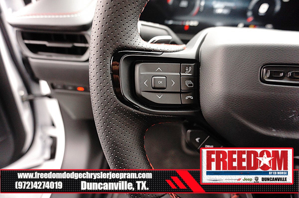 Big cash and no payments for 90 days! Our only Dealership add is GREAT CUSTOMER SERVICE. Real Deals, No Games and No Surprises. Price Includes only Rebates EVERYONE Qualifies for. We Make it Easy No Games. Equipped with Blacktop Package (Dark Exterior Badging, Dual Rear Exhaust with Black Tips, and Wheels: 20 x 10 Dark Finish Aluminum), Quick Order Package 22P Scat Pack, Two Tone Paint Group, AWD, Black Artificial Leather, 10 Speakers, 2-Way Manual Adjust Front Head Restraints, 2-Way Power Driver Lumbar Adjust, 4-Wheel Disc Brakes, 4G LTE Wi-Fi Hot Spot, 8-Way Power Driver Seat Adjust, ABS brakes, Active Noise Control System, Air Conditioning, Alloy wheels, AM/FM radio: SiriusXM w/360L, Apple CarPlay/Android Auto, Auto-dimming Rear-View mirror, Automatic temperature control, Black Seats, Brake assist, Bumpers: body-color, Compass, Connectivity - US/Canada, Delay-off headlights, Disassociated Touchscreen Display, Driver door bin, Driver vanity mirror, Dual front impact airbags, Dual front side impact airbags, Electronic Stability Control, Emergency communication system: Dodge Connect, Four wheel independent suspension, Front anti-roll bar, Front Bucket Seats, Front Center Armrest, Front dual zone A/C, Front License Plate Bracket, Front reading lights, Fully automatic headlights, Garage door transmitter, Heated door mirrors, Heated Exterior Mirrors, Heated Front Seats, Heated front seats, Heated steering wheel, Illuminated entry, Integrated Center Stack Radio, Knee airbag, Leather Shift Knob, Leatherette/Cloth Performance Seats, Low Back Bucket Seats, Low tire pressure warning, Occupant sensing airbag, Outside temperature display, Overhead airbag, Overhead console, Panic alarm, ParkView Rear Back-Up Camera, Passenger door bin, Passenger vanity mirror, Power Adjust Mirrors, Power door mirrors, Power driver seat, Power steering, Power windows, Radio data system, Radio: Uconnect 5 with 12.3 Display, Rear anti-roll bar, Rear reading lights, Rear seat center armrest, Rear window defroster, Remote keyless entry, Security system, Speed control, Split folding rear seat, Spoiler, Sport steering wheel, Steering wheel mounted audio controls, Tachometer, Telescoping steering wheel, Tilt steering wheel, Traction control, Trip computer, Variably intermittent wipers, Wheels: 20 x 10 Aluminum, Wireless Apple CarPlay, and Wireless Google Android Auto Freedom uses very reasonable effort to ensure the accuracy of information, we are not responsible for any errors or omissions contained on these pages. Please verify any information in question with Freedom Chrysler Dodge Jeep Ram * Images, prices, and options shown, including vehicle color, trim, options, pricing and other specifications are subject to availability, incentive offerings, current pricing and credit worthiness. * MSRP is the Manufacturer's Suggested Retail Price (MSRP) of the vehicle. It does not include any taxes, fees or other charges. Pricing and availability may vary based on a variety of factors, including options, dealer, specials, fees, and financing qualifications. Consult your dealer for actual price and complete details. Vehicles shown may have optional equipment at an additional cost. * The estimated selling price that appears after calculating dealer offers is for informational purposes, only. You may not qualify for the offers, incentives, discounts, or financing. Not all rebates are compatible with each other. Offers, incentives, discounts, or financing are subject to expiration and other restrictions. See dealer for qualifications and complete details. * In transit means that vehicles have been built but have not yet arrived at your dealer. Images shown may not necessarily represent identical vehicles in trans Price includes: $500 - 2026 National 2026 Military Bonus Cash . Exp. 01/04/2027 $550 - 2026 National Burning Gas Conquest Bonus Cash. Exp