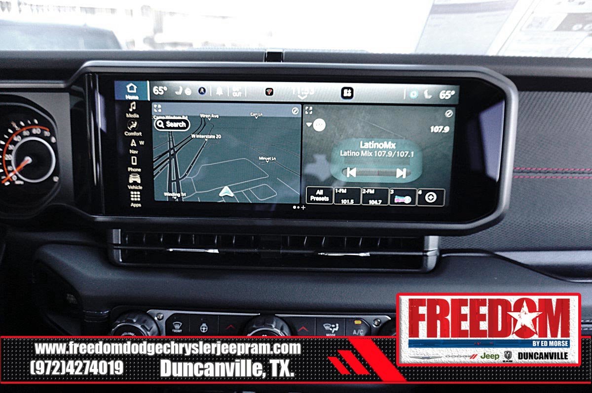 Big cash and no payments for 90 days! Our only Dealership add is GREAT CUSTOMER SERVICE. Real Deals, No Games and No Surprises. Price Includes only Rebates EVERYONE Qualifies for. We Make it Easy No Games. Equipped with Quick Order Package 24Y Rubicon X (12.3 Touchscreen Display, 4G LTE Wi-Fi Hot Spot, Acoustic Front Seat Area Carpet, Acoustic Laminated Front Door Glass, Alpine Premium Audio System, Apple CarPlay, Auto High Beam Headlamp Control, Auto-Dimming Rear-View Mirror, Blind Spot and Cross Path Detection, Body Color 3-Piece Hard Top, Body Color Rubicon Highline Flare, Connected Travel and Traffic Services, Connectivity - US/Canada, Freedom Panel Storage Bag, Google Android Auto, HD Radio, Heated Front Seats, Heated Steering Wheel, Integrated Off-Road Camera, Integrated Voice Command with Bluetooth®, Leather Wrapped Park Brake Handle, Leather Wrapped Shift Knob, MOPAR Hardtop Headliner, Nappa Leather Seats, No Soft Top, ParkSense Rear Park Assist System, Power 4-Way Driver Lumbar Adjust, Power 4-Way Passenger Lumbar Adjust, Power Adjust 8-Way Driver Seat, Power Adjust 8-Way Front Passenger Seat, Premium Door Trim Panel, Radio: Uconnect 5 Navigation with 12.3 Display, Rear Window Defroster, Rear Window Wiper/Washer, SiriusXM with 360L, Steel Front Bumper, Steel Rear Bumper, and Universal Garage Door Opener), Trailer Tow Prep Package, 35 Tire Suspension, 4-Wheel Disc Brakes, 8 Speakers, ABS brakes, Air Conditioning, Alloy wheels, AM/FM radio: SiriusXM with 360L, Apple CarPlay/Android Auto, Automatic temperature control, Aux Battery, Auxiliary Switches, Brake assist, Class II Receiver Hitch, Cloth Low-Back Bucket Seats, Compass, Delay-off headlights, Driver door bin, Driver vanity mirror, Dual front impact airbags, Dual front side impact airbags, Electronic Stability Control, Emergency communication system: Jeep Connect, For More Info, Call 800-643-2112, Front anti-roll bar, Front Bucket Seats, Front Center Armrest w/Storage, Front dual zone A/C, Front fog lights, Front License Plate Bracket, Front reading lights, Fully automatic headlights, Heated door mirrors, Illuminated entry, Integrated Center Stack Radio, Integrated roll-over protection, Low tire pressure warning, MOPAR All-Weather Floor Mats, MOPAR Hinge-Gate Reinforcement, Non-Lock Fuel Cap Without Discriminator, Occupant sensing airbag, Outside temperature display, Overhead airbag, Panic alarm, ParkView Rear Back-Up Camera, Passenger door bin, Passenger vanity mirror, Performance Suspension, Power door mirrors, Power steering, Power windows, Radio data system, Radio: Uconnect 5 with 12.3 Display, Rear anti-roll bar, Rear reading lights, Remote keyless entry, Security system, SiriusXM Radio Service, Speed control, Split folding rear seat, Steering wheel mounted audio controls, Stop-Start Dual Battery System, Tachometer, Telescoping steering wheel, Tilt steering wheel, Traction control, Trip computer, Variably intermittent wipers, Voltmeter, Wheels: 17 x 7.5 Machined/Painted Black, and Wheels: 17 x 8 Machined with Black Pockets Freedom uses very reasonable effort to ensure the accuracy of information, we are not responsible for any errors or omissions contained on these pages. Please verify any information in question with Freedom Chrysler Dodge Jeep Ram * Images, prices, and options shown, including vehicle color, trim, options, pricing and other specifications are subject to availability, incentive offerings, current pricing and credit worthiness. * MSRP is the Manufacturer's Suggested Retail Price (MSRP) of the vehicle. It does not include any taxes, fees or other charges. Pricing and availability may vary based on a variety of factors, including options, dealer, specials, fees, and financing qualifications. Consult your dealer for actual price and complete details. Vehicles shown may have optional equipment at an additional cost. * The estimated selling price that appears after calcu