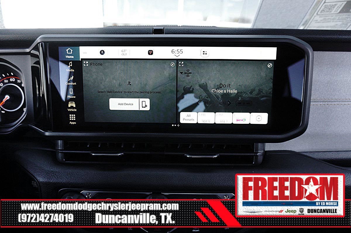 Big cash and no payments for 90 days! Our only Dealership add is GREAT CUSTOMER SERVICE. Real Deals, No Games and No Surprises. Price Includes only Rebates EVERYONE Qualifies for. We Make it Easy No Games. Equipped with Quick Order Package 24B Sport, 12.3 Touchscreen Display, 3.45 Overall Top Gear Ratio, 4-Wheel Disc Brakes, 4G LTE Wi-Fi Hot Spot, 8 Speakers, ABS brakes, Air Conditioning, AM/FM radio: SiriusXM with 360L, Apple CarPlay, Apple CarPlay/Android Auto, Aux Battery, Black 3-Piece Hard Top, Brake assist, Compass, Connectivity - US/Canada, Delay-off headlights, Driver door bin, Driver vanity mirror, Dual front impact airbags, Dual front side impact airbags, Electronic Stability Control, For More Info, Call 800-643-2112, Freedom Panel Storage Bag, Front anti-roll bar, Front Bucket Seats, Front Center Armrest w/Storage, Front fog lights, Front reading lights, Google Android Auto, Illuminated entry, Integrated Center Stack Radio, Integrated roll-over protection, Low tire pressure warning, Manufacture Statement of Origin, MOPAR All-Weather Floor Mats, No Soft Top, Non-Lock Fuel Cap Without Discriminator, Normal Duty Suspension, Occupant sensing airbag, Outside temperature display, Overhead airbag, Panic alarm, ParkView Rear Back-Up Camera, Passenger door bin, Passenger vanity mirror, Power steering, Power windows, Radio data system, Radio: Uconnect 5 with 12.3 Display, Rear anti-roll bar, Rear reading lights, Rear Window Defroster, Rear Window Wiper/Washer, Remote keyless entry, SiriusXM Radio Service, SiriusXM with 360L, Speed control, Split folding rear seat, Steering wheel mounted audio controls, Stop-Start Dual Battery System, Tachometer, Telescoping steering wheel, Tilt steering wheel, Traction control, Trip computer, Variably intermittent wipers, and Wheels: 17 x 7.5 Black Steel Styled Freedom uses very reasonable effort to ensure the accuracy of information, we are not responsible for any errors or omissions contained on these pages. Please verify any information in question with Freedom Chrysler Dodge Jeep Ram * Images, prices, and options shown, including vehicle color, trim, options, pricing and other specifications are subject to availability, incentive offerings, current pricing and credit worthiness. * MSRP is the Manufacturer's Suggested Retail Price (MSRP) of the vehicle. It does not include any taxes, fees or other charges. Pricing and availability may vary based on a variety of factors, including options, dealer, specials, fees, and financing qualifications. Consult your dealer for actual price and complete details. Vehicles shown may have optional equipment at an additional cost. * The estimated selling price that appears after calculating dealer offers is for informational purposes, only. You may not qualify for the offers, incentives, discounts, or financing. Not all rebates are compatible with each other. Offers, incentives, discounts, or financing are subject to expiration and other restrictions. See dealer for qualifications and complete details. * In transit means that vehicles have been built but have not yet arrived at your dealer. Images shown may not necessarily represent identical vehicles in transit to the dealership. See dealer for actual price, payments and complete details. EPA Estimates are only estimating. Tax, title, license (unless itemized above) are extra. Not available with special finance, lease and some other offers. Price includes: $1000 - 2026 National Stellantis Loyalty Bonus Cash . Exp. 03/02/2026 $1500 - 2026 National Select Inventory Bonus Cash . Exp. 01/04/2027 $1500 - 2026 Southwest BC Retail Bonus Cash . Exp. 03/02/2026