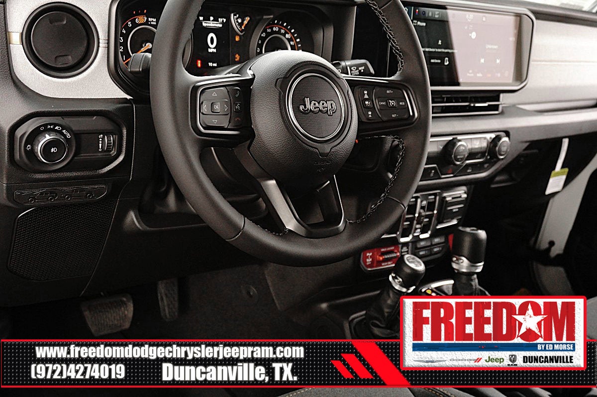 Big cash and no payments for 90 days! Our only Dealership add is GREAT CUSTOMER SERVICE. Real Deals, No Games and No Surprises. Price Includes only Rebates EVERYONE Qualifies for. We Make it Easy No Games. Equipped with Quick Order Package 24W Willys (4-Wheel Drive Swing Gate Decal, 7 and 4 Pin Wiring Harness, Advanced Brake Assist, Automatic Headlamps, Auxiliary Switches, Black Grille with Gloss Black Rings, Class II Receiver Hitch, Conventional Differential Front Axle, Corning Gorilla Glass, Dana M210 Wide HD Tube Front Axle, Dana M220 Wide Rear Axle, Daytime Running Lamps LED Accents, Deep Tint Sunscreen Windows, E-Locker Rear Axle, Enhanced Adaptive Cruise Control, Front LED Fog Lamps, Full Speed Forward Collision Warning Plus, Injection Molded Black Rear Bumper, LED Premium Reflector Headlamps, Mold in Color Bumper with Gloss Black, Molded in Color Rubicon Highline Flare, MOPAR All-Weather Floor Mats, Off-Road Plus Mode, Power Heated Mirrors, Premium Wrapped Steering Wheel, Security Alarm, Sun Visors with Illuminated Vanity Mirrors, Wheels: 17 x 7.5 Painted Black, Willy's Suspension, and Willys Hood Decal), Steel Power Dome Hood Package (Power Dome Dual Vented Hood), 12.3 Touchscreen Display, 4-Wheel Disc Brakes, 4G LTE Wi-Fi Hot Spot, 8 Speakers, ABS brakes, Air Conditioning, AM/FM radio: SiriusXM with 360L, Apple CarPlay, Apple CarPlay/Android Auto, Aux Battery, Black 3-Piece Hard Top, Brake assist, Compass, Connectivity - US/Canada, Delay-off headlights, Driver door bin, Driver vanity mirror, Dual front impact airbags, Dual front side impact airbags, Electronic Stability Control, For More Info, Call 800-643-2112, Freedom Panel Storage Bag, Front anti-roll bar, Front Bucket Seats, Front Center Armrest w/Storage, Front fog lights, Front reading lights, Google Android Auto, Illuminated entry, Integrated Center Stack Radio, Integrated roll-over protection, Low tire pressure warning, Manufacture Statement of Origin, No Soft Top, Non-Lock Fuel Cap Without Discriminator, Normal Duty Suspension, Occupant sensing airbag, Outside temperature display, Overhead airbag, Panic alarm, ParkView Rear Back-Up Camera, Passenger door bin, Passenger vanity mirror, Power steering, Power windows, Radio data system, Radio: Uconnect 5 with 12.3 Display, Rear anti-roll bar, Rear reading lights, Rear Window Defroster, Rear Window Wiper/Washer, Remote keyless entry, SiriusXM Radio Service, SiriusXM with 360L, Speed control, Split folding rear seat, Steering wheel mounted audio controls, Stop-Start Dual Battery System, Tachometer, Telescoping steering wheel, Tilt steering wheel, Traction control, Trip computer, Variably intermittent wipers, and Wheels: 17 x 7.5 Black Steel Styled Freedom uses very reasonable effort to ensure the accuracy of information, we are not responsible for any errors or omissions contained on these pages. Please verify any information in question with Freedom Chrysler Dodge Jeep Ram * Images, prices, and options shown, including vehicle color, trim, options, pricing and other specifications are subject to availability, incentive offerings, current pricing and credit worthiness. * MSRP is the Manufacturer's Suggested Retail Price (MSRP) of the vehicle. It does not include any taxes, fees or other charges. Pricing and availability may vary based on a variety of factors, including options, dealer, specials, fees, and financing qualifications. Consult your dealer for actual price and complete details. Vehicles shown may have optional equipment at an additional cost. * The estimated selling price that appears after calculating dealer offers is for informational purposes, only. You may not qualify for the offers, incentives, discounts, or financing. Price includes: $1000 - 2026 National Stellantis Loyalty Bonus Cash . Exp. 03/31/2026 $1500 - 2026 Southwest BC Bonus Cash . Exp. 03/31/2026 $2000 - 2026 National Select Inventory Bonus Cash. Exp. 01/0