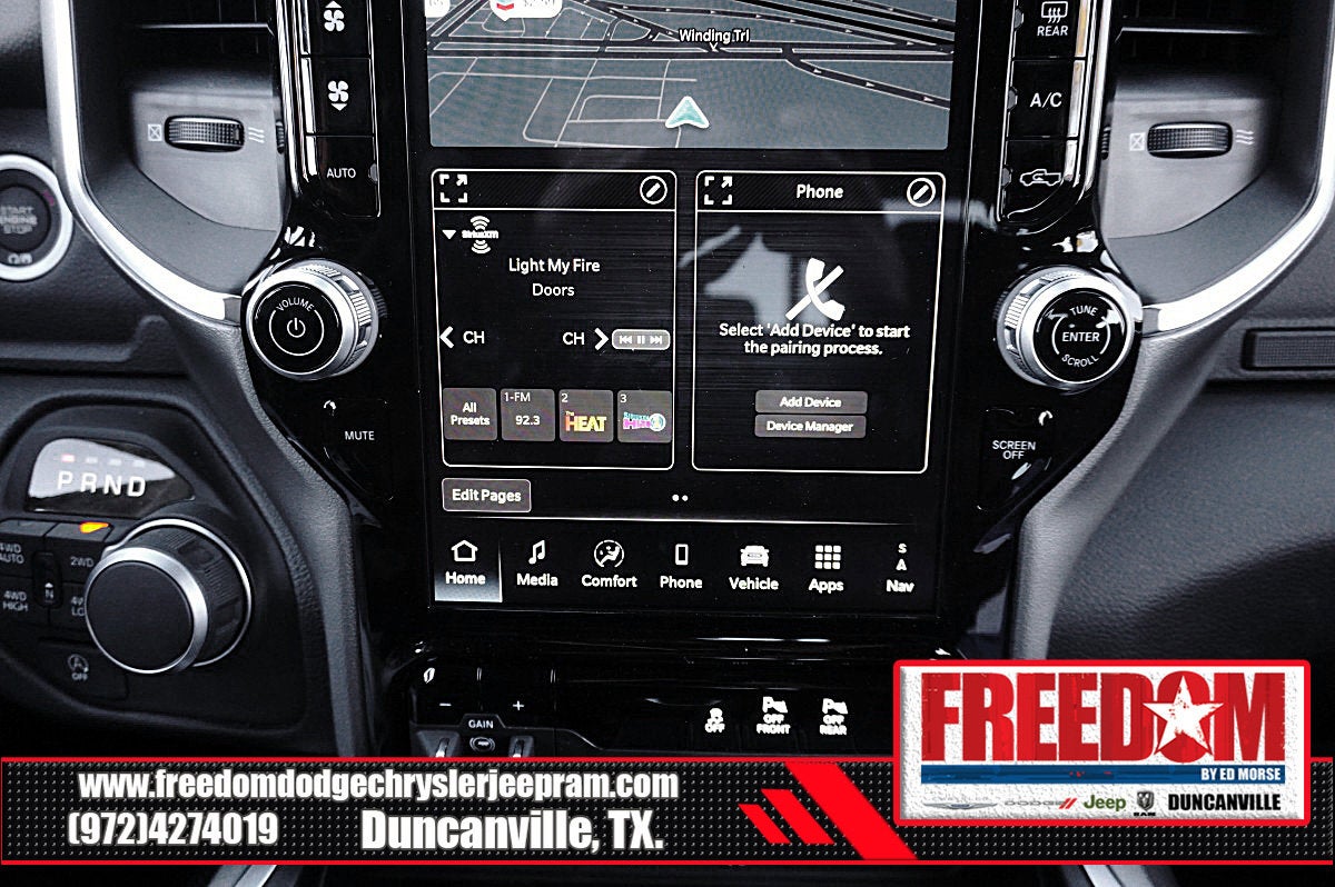 Big cash and no payments for 90 days! Our only Dealership add is GREAT CUSTOMER SERVICE. Real Deals, No Games and No Surprises. Price Includes only Rebates EVERYONE Qualifies for. We Make it Easy No Games. Equipped with Big Horn Level 2 Equipment Group (115V Auxiliary Power Outlet, 115V Auxiliary Rear Power Outlet, 12 Touchscreen Display, 2nd Row in Floor Storage Bins, 3 Rear Seat Head Restraints, 4 Way Front Headrests, 400W Inverter, 4G LTE Wi-Fi Hot Spot, 9 Amplified Speakers with Subwoofer, Air Conditioning ATC with Dual Zone Control, Apple CarPlay, Auto Power-Folding Mirrors, Auto-Dimming Exterior Driver Mirror, Auto-Dimming Rear-View Mirror, Black Exterior Mirrors, Black Premium Power Mirrors, Body Color Fender Flares, Bucket Seats, Center Console Parts Module, Cluster 7.0 TFT Color Display, Configurable Drive Mode, Connected Travel and Traffic Services, Connectivity - US/Canada, Convex Wide-Angle Exterior Mirror Insert, Deluxe Cloth Bucket Seats, Disassociated Touchscreen Display, Exterior Mirrors Courtesy Lamps, Exterior Mirrors with Heating Element, Exterior Mirrors with Supplemental Signals, Front Seat Back Map Pockets, Full Length Floor Console, Global Telematics Box Module, Glove Box Lamp, Google Android Auto, GPS Antenna Input, GPS Navigation, HD Radio, Heated Front Seats, Heated Steering Wheel, Integrated Center Stack Radio, Integrated Voice Command with Bluetooth®, Leather Wrapped Steering Wheel, LED Dome Lamp with on/Off Switch, LED Footwell Lighting, Manual Adjust 4-Way Front Passenger Seat, Media Hub with 2 Charge Only USBs, Overhead LED Lamps, Power 2-Way Driver Lumbar Adjust, Power Adjust 8-Way Driver Seat, Power Adjustable Pedals, Premium Overhead Console, Radio: Uconnect 5 Navigation with 12.0 Display, Rear 60/40 Folding Seat, Rear Center Armrest, Rear Power Sliding Window, Rear Window Defroster, Remote Tailgate Release, Security Alarm, SiriusXM Radio Service, SiriusXM with 360L, Steering Wheel Mounted Audio Controls, Sun Visors with Illuminated Vanity Mirrors, Universal Garage Door Opener, and USB Host Flip), Night Edition (Accent Color Door Handles, Accent Color Premium Power Mirrors, Accent Color Tailgate Handle, Anti-Spin Differential Rear Axle, Black Exterior Truck Badging, Black Headlamp Bezels, Black Interior Accents, Black Painted Exterior Mirrors Caps, Black Tail Lamp Bezels, Body Color Front Bumper, Body Color Rear Bumper with Step Pads, Dual Exhaust with Black Tips, Grille Black Surround Black Mesh, RAM Grille Badge - Black, and Wheels: 20 x 9.0 Aluminum Painted Clad), Quick Order Package 27R Lone Star (Lone Star Badge), 33 Gallon Fuel Tank, 4-Wheel Disc Brakes, 48V Belt Starter Generator, 6 Speakers, ABS brakes, Air Conditioning, Alloy wheels, AM/FM radio, Apple CarPlay/Android Auto, Auto High-beam Headlights, Brake assist, Bumpers: chrome, Cloth Bucket Seats, Cluster 12 TFT Color Display, Compass, Delay-off headlights, Driver door bin, Dual front impact airbags, Dual front side impact airbags, Electronic Stability Control, Front anti-roll bar, Front Bucket Seats, Front Center Armrest w/Storage, Front fog lights, Front License Plate Bracket, Front reading lights, Front wheel independent suspension, Fully automatic headlights, Heated door mirrors, Illuminated entry, Low tire pressure warning, Manual Adjust 4-Way Driver Seat, Manual Folding Exterior Mirrors, Manufacturer's Statement of Origin, Mopar Black Tubular Side Steps, Occupant sensing airbag, Outside temperature display, Overhead airbag, Overhead console, Panic alarm, ParkView Rear Back-Up Camera, Passenger door bin, Passenger vanity mirror, Power door mirrors, Power steering, Power windows, Radio data system, Radio: Uconnect 5 W wi Price includes: $1000 - 2026 Southwest BC State of Texas Regional Bonus Cash . Exp. 03/02/2026 $3500 - 2026 National Retail Consumer Cash . Exp. 03/02/2026 $750 - 2026 Southwest BC Retail Bonus Cash . Exp. 03/0