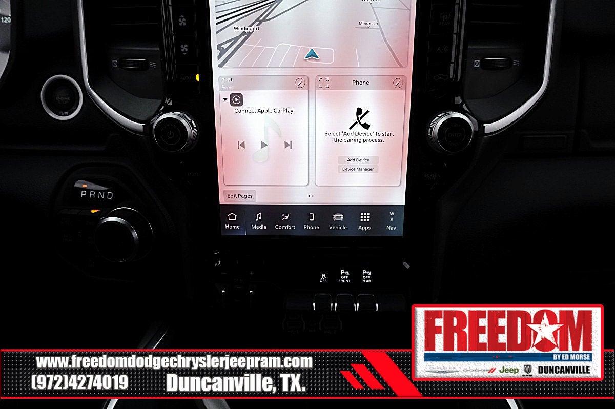 Big cash and no payments for 90 days! Our only Dealership add is GREAT CUSTOMER SERVICE. Real Deals, No Games and No Surprises. Price Includes only Rebates EVERYONE Qualifies for. We Make it Easy No Games. Equipped with Big Horn Level 2 Equipment Group (115V Auxiliary Power Outlet, 115V Auxiliary Rear Power Outlet, 12 Touchscreen Display, 2nd Row in Floor Storage Bins, 3 Rear Seat Head Restraints, 4 Way Front Headrests, 400W Inverter, 4G LTE Wi-Fi Hot Spot, 9 Amplified Speakers with Subwoofer, Air Conditioning ATC with Dual Zone Control, Apple CarPlay, Auto Power-Folding Mirrors, Auto-Dimming Exterior Driver Mirror, Auto-Dimming Rear-View Mirror, Black Exterior Mirrors, Black Premium Power Mirrors, Body Color Fender Flares, Bucket Seats, Center Console Parts Module, Cluster 7.0 TFT Color Display, Configurable Drive Mode, Connected Travel and Traffic Services, Connectivity - US/Canada, Convex Wide-Angle Exterior Mirror Insert, Deluxe Cloth Bucket Seats, Disassociated Touchscreen Display, Exterior Mirrors Courtesy Lamps, Exterior Mirrors with Heating Element, Exterior Mirrors with Supplemental Signals, Front Seat Back Map Pockets, Full Length Floor Console, Global Telematics Box Module, Glove Box Lamp, Google Android Auto, GPS Antenna Input, GPS Navigation, HD Radio, Heated Front Seats, Heated Steering Wheel, Integrated Center Stack Radio, Integrated Voice Command with Bluetooth®, Leather Wrapped Steering Wheel, LED Dome Lamp with on/Off Switch, LED Footwell Lighting, Manual Adjust 4-Way Front Passenger Seat, Media Hub with 2 Charge Only USBs, Overhead LED Lamps, Power 2-Way Driver Lumbar Adjust, Power Adjust 8-Way Driver Seat, Power Adjustable Pedals, Premium Overhead Console, Radio: Uconnect 5 Navigation with 12.0 Display, Rear 60/40 Folding Seat, Rear Center Armrest, Rear Power Sliding Window, Rear Window Defroster, Remote Tailgate Release, Security Alarm, SiriusXM Radio Service, SiriusXM with 360L, Steering Wheel Mounted Audio Controls, Sun Visors with Illuminated Vanity Mirrors, Universal Garage Door Opener, and USB Host Flip), Night Edition (Accent Color Door Handles, Accent Color Premium Power Mirrors, Accent Color Tailgate Handle, Anti-Spin Differential Rear Axle, Black Exterior Truck Badging, Black Headlamp Bezels, Black Interior Accents, Black Painted Exterior Mirrors Caps, Black Tail Lamp Bezels, Body Color Front Bumper, Body Color Rear Bumper with Step Pads, Dual Exhaust with Black Tips, Grille Black Surround Black Mesh, RAM Grille Badge - Black, and Wheels: 20 x 9.0 Aluminum Painted Clad), Quick Order Package 27R Lone Star (Lone Star Badge), 33 Gallon Fuel Tank, 4-Wheel Disc Brakes, 48V Belt Starter Generator, 6 Speakers, ABS brakes, Air Conditioning, Alloy wheels, AM/FM radio, Apple CarPlay/Android Auto, Auto High-beam Headlights, Brake assist, Bumpers: chrome, Cloth Bucket Seats, Cluster 12 TFT Color Display, Compass, Delay-off headlights, Driver door bin, Dual front impact airbags, Dual front side impact airbags, Electronic Stability Control, Front anti-roll bar, Front Bucket Seats, Front Center Armrest w/Storage, Front fog lights, Front License Plate Bracket, Front reading lights, Front wheel independent suspension, Fully automatic headlights, Heated door mirrors, Illuminated entry, Low tire pressure warning, Manual Adjust 4-Way Driver Seat, Manual Folding Exterior Mirrors, Manufacturer's Statement of Origin, Mopar Black Tubular Side Steps, Occupant sensing airbag, Outside temperature display, Overhead airbag, Overhead console, Panic alarm, ParkView Rear Back-Up Camera, Passenger door bin, Passenger vanity mirror, Power door mirrors, Power st Price includes: $1000 - 2026 Southwest BC State of Texas Regional Bonus Cash . Exp. 03/31/2026 $3500 - 2026 National Retail Consumer Cash . Exp. 03/31/2026 $500 - 2026 National 2026 Military Bonus Cash . Exp. 01/04/2027 $750 - 2026 Southwest BC Retail Bonus Cash . Exp. 03/3