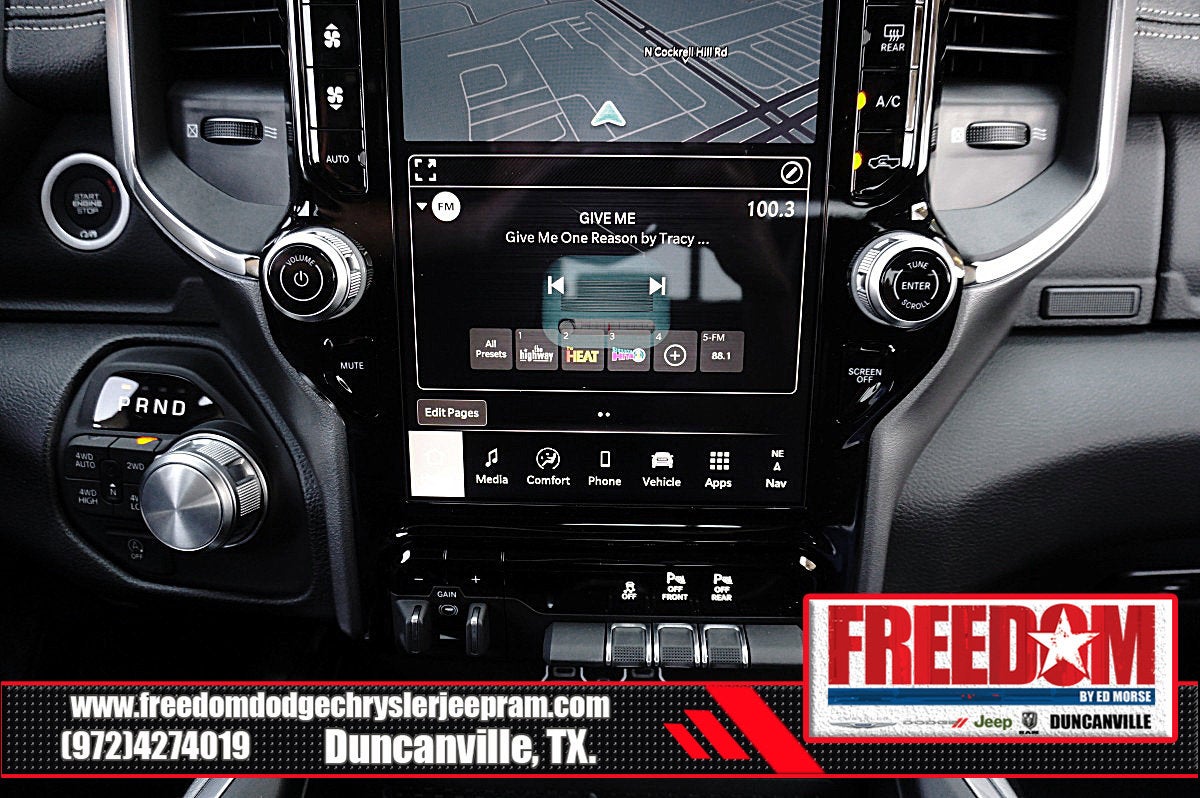 Big cash and no payments for 90 days! Our only Dealership add is GREAT CUSTOMER SERVICE. Real Deals, No Games and No Surprises. Price Includes only Rebates EVERYONE Qualifies for. We Make it Easy No Games. Equipped with Laramie Level 1 Equipment Group (Rain Sensitive Windshield Wipers and Remote Tailgate Release), Laramie Southwest Edition (Accent Color Premium Power Mirrors, Auto Power-Folding Mirrors, Auto-Dimming Exterior Driver Mirror, Black Painted Exterior Mirrors Caps, Body Color Front Bumper, Body Color Rear Bumper with Step Pads, Convex Wide-Angle Exterior Mirror Insert, Dome Dual LED Reading Lamp, Dual-Pane Panoramic Sunroof, Exterior Mirrors Courtesy Lamps, Exterior Mirrors with Heating Element, Exterior Mirrors with Memory, Exterior Mirrors with Supplemental Signals, Grille Surround 3 Body Color Tex 4 Chrome, LED Dome/Reading Lamp, MOPAR Lockable Console Storage, Power Deployable Running Boards, RAM Grille Badge - Chrome, Tow Hooks, and Trailer Brake Control), Quick Order Package 21H Laramie, 10 Speakers, 3.55 Rear Axle Ratio, 4-Wheel Disc Brakes, 4G LTE Wi-Fi Hot Spot, ABS brakes, Active Noise Control System, Adjustable pedals, Air Conditioning, Alloy wheels, AM/FM radio: SiriusXM with 360L, Anti-Spin Differential Rear Axle, Apple CarPlay/Android Auto, Audio memory, Auto High-beam Headlights, Auto-dimming door mirrors, Auto-dimming Rear-View mirror, Automatic temperature control, Brake assist, Bumpers: chrome, Chrome Exterior Mirrors, Compass, Connected Travel and Traffic Services, Connectivity - US/Canada, Delay-off headlights, Driver door bin, Driver vanity mirror, Dual front impact airbags, Dual front side impact airbags, Electronic Stability Control, Front anti-roll bar, Front Bucket Seats, Front Center Armrest w/Storage, Front dual zone A/C, Front fog lights, Front License Plate Bracket, Front reading lights, Front wheel independent suspension, Fully automatic headlights, Garage door transmitter, GPS Navigation, Heated door mirrors, Heated front seats, Heated rear seats, Heated steering wheel, Illuminated entry, Integrated Center Stack Radio, Integrated Voice Command with Bluetooth®, Leather steering wheel, Leather Trimmed Bucket Seats, Low tire pressure warning, Manufacturer's Statement of Origin, Memory seat, Navigation System, Occupant sensing airbag, Off-Road Information Pages, Outside temperature display, Overhead airbag, Overhead console, Panic alarm, ParkView Rear Back-Up Camera, Passenger door bin, Passenger vanity mirror, Pedal memory, Power door mirrors, Power driver seat, Power passenger seat, Power steering, Power windows, Radio data system, Radio: Uconnect 5 Navigation with 12.0 Display, Rear anti-roll bar, Rear reading lights, Rear seat center armrest, Rear step bumper, Remote keyless entry, Security system, SiriusXM Radio Service, SiriusXM with 360L, Speed control, Split folding rear seat, Steering wheel mounted audio controls, Tachometer, Telescoping steering wheel, Tilt steering wheel, Traction control, Trip computer, Turn signal indicator mirrors, USB Host Flip, Variably intermittent wipers, Ventilated front seats, Voltmeter, and Wheels: 20 x 9 Premium Paint/Polish Freedom uses very reasonable effort to ensure the accuracy of information, we are not responsible for any errors or omissions contained on these pages. Please verify any information in question with Freedom Chrysler Dodge Jeep Ram * Images, prices, and options shown, including vehicle color, trim, options, pricing and other specifications are subject to availability, incentive offerings, current pricing and credit worthiness. * MSRP is the Manufacturer's Suggested Retail Price (MSRP) of the vehic Price includes: $1000 - 2026 National Bonus Cash . Exp. 03/31/2026 $1000 - 2026 Southwest BC State of Texas Regional Bonus Cash . Exp. 03/31/2026 $3500 - 2026 National Retail Consumer Cash . Exp. 03/31/2026 $500 - 2026 National 2026 Military Bonus Cash . Exp. 01/0