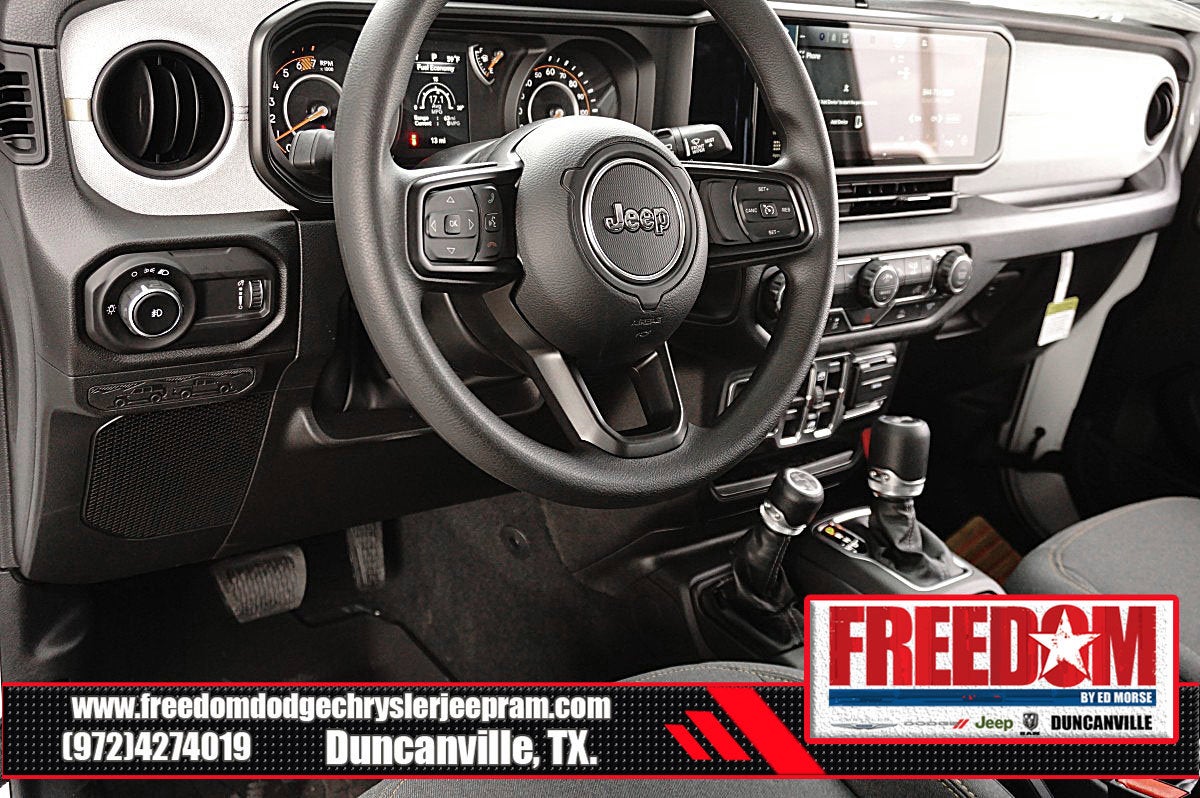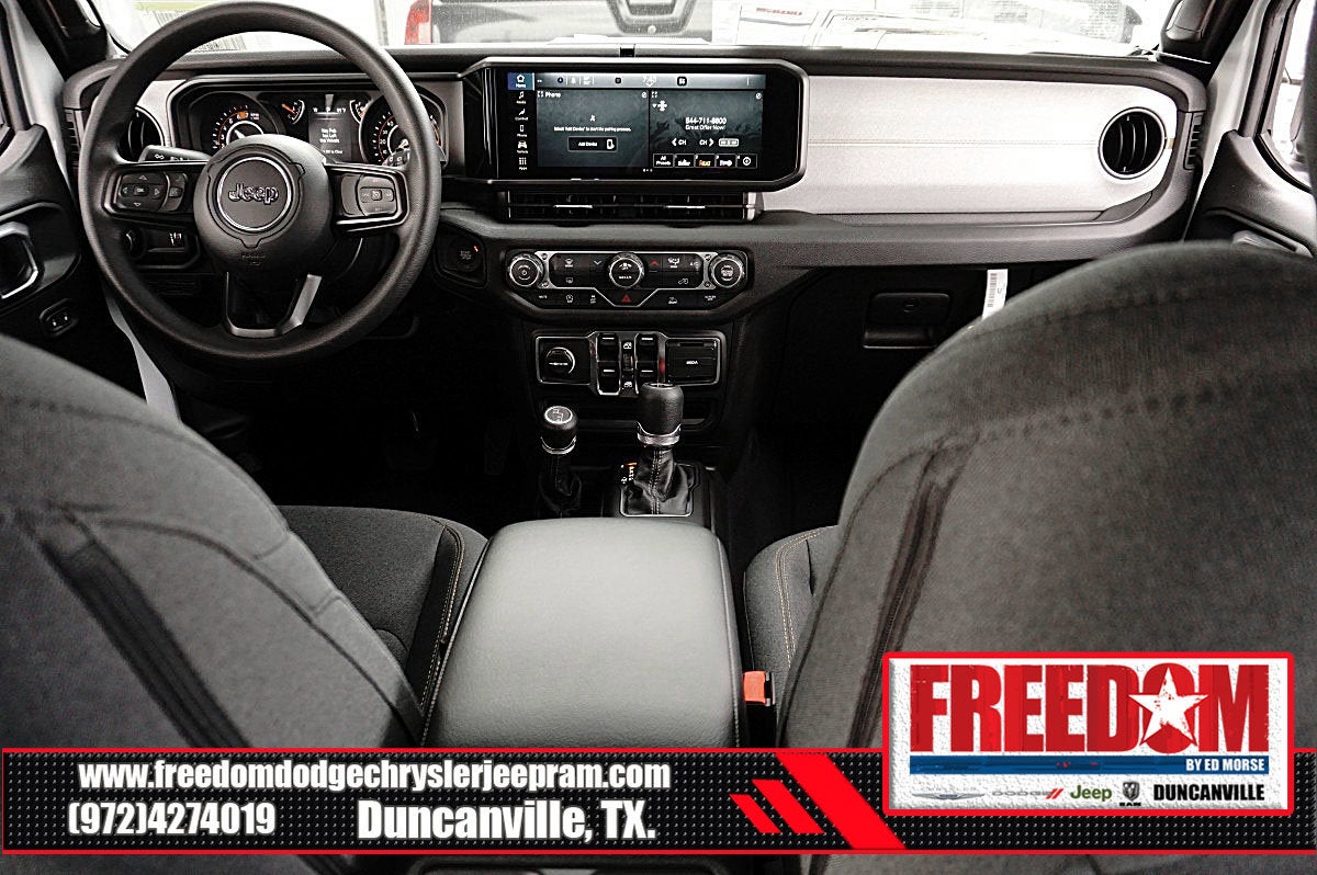 Big cash and no payments for 90 days! Our only Dealership add is GREAT CUSTOMER SERVICE. Real Deals, No Games and No Surprises. Price Includes only Rebates EVERYONE Qualifies for. We Make it Easy No Games. Equipped with Quick Order Package 22B Sport, 12.3 Touchscreen Display, 3.45 Overall Top Gear Ratio, 4-Wheel Disc Brakes, 4G LTE Wi-Fi Hot Spot, 8 Speakers, ABS brakes, Air Conditioning, AM/FM radio: SiriusXM with 360L, Apple CarPlay, Apple CarPlay/Android Auto, Aux Battery, Black 3-Piece Hard Top, Brake assist, Compass, Connectivity - US/Canada, Delay-off headlights, Driver door bin, Driver vanity mirror, Dual front impact airbags, Dual front side impact airbags, Electronic Stability Control, For More Info, Call 800-643-2112, Freedom Panel Storage Bag, Front anti-roll bar, Front Bucket Seats, Front Center Armrest w/Storage, Front fog lights, Front reading lights, Google Android Auto, Illuminated entry, Integrated Center Stack Radio, Integrated roll-over protection, Low tire pressure warning, MOPAR All-Weather Floor Mats, No Soft Top, Non-Lock Fuel Cap Without Discriminator, Normal Duty Suspension, Occupant sensing airbag, Outside temperature display, Overhead airbag, Panic alarm, ParkView Rear Back-Up Camera, Passenger door bin, Passenger vanity mirror, Power steering, Power windows, Radio data system, Radio: Uconnect 5 with 12.3 Display, Rear anti-roll bar, Rear reading lights, Rear Window Defroster, Rear Window Wiper/Washer, Remote keyless entry, SiriusXM Radio Service, SiriusXM with 360L, Speed control, Split folding rear seat, Steering wheel mounted audio controls, Stop-Start Dual Battery System, Tachometer, Telescoping steering wheel, Tilt steering wheel, Traction control, Trip computer, Variably intermittent wipers, and Wheels: 17 x 7.5 Black Steel Styled Freedom uses very reasonable effort to ensure the accuracy of information, we are not responsible for any errors or omissions contained on these pages. Please verify any information in question with Freedom Chrysler Dodge Jeep Ram * Images, prices, and options shown, including vehicle color, trim, options, pricing and other specifications are subject to availability, incentive offerings, current pricing and credit worthiness. * MSRP is the Manufacturer's Suggested Retail Price (MSRP) of the vehicle. It does not include any taxes, fees or other charges. Pricing and availability may vary based on a variety of factors, including options, dealer, specials, fees, and financing qualifications. Consult your dealer for actual price and complete details. Vehicles shown may have optional equipment at an additional cost. * The estimated selling price that appears after calculating dealer offers is for informational purposes, only. You may not qualify for the offers, incentives, discounts, or financing. Not all rebates are compatible with each other. Offers, incentives, discounts, or financing are subject to expiration and other restrictions. See dealer for qualifications and complete details. * In transit means that vehicles have been built but have not yet arrived at your dealer. Images shown may not necessarily represent identical vehicles in transit to the dealership. See dealer for actual price, payments and complete details. EPA Estimates are only estimating. Tax, title, license (unless itemized above) are extra. Not available with special finance, lease and some other offers. Price includes: $1000 - 2026 National Retail Bonus Cash . Exp. 04/30/2026 $1000 - 2026 National Stellantis Loyalty Bonus Cash . Exp. 04/30/2026 $1500 - 2026 Southwest BC Bonus Cash . Exp. 04/30/2026 $500 - 2026 National 2026 Military Bonus Cash . Exp. 01/04/2027