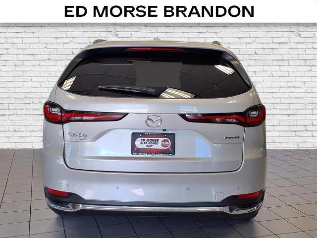 Equipped with CX-90 3.3 Turbo Premium Plus, 4D Sport Utility, I6 Turbo, 8-Speed Automatic, AWD, Platinum Quartz, Black Leather, 12 Speakers, 3rd row seats: bench, 4-Wheel Disc Brakes, ABS brakes, Air Conditioning, Alloy wheels, AM/FM radio: SiriusXM, Auto High-beam Headlights, Auto-dimming door mirrors, Automatic temperature control, Brake assist, Bumpers: body-color, Compass, Delay-off headlights, Driver door bin, Driver vanity mirror, Dual front impact airbags, Dual front side impact airbags, E911 Automatic Emergency Notification, Electronic Stability Control, Emergency communication system: MAZDA CONNECT, Four wheel independent suspension, Front anti-roll bar, Front Bucket Seats, Front Center Armrest w/Storage, Front dual zone A/C, Front reading lights, Fully automatic headlights, Garage door transmitter: HomeLink, Heads-Up Display, Heated door mirrors, Heated front seats, Heated rear seats, Heated steering wheel, Heated/Ventilated Front Bucket Seats, Illuminated entry, Infotainment System Voice Command, Knee airbag, Leather Shift Knob, Leather steering wheel, Low tire pressure warning, Mazda Connected Services, Mazda Navigation System, Memory seat, Nappa Leather Seat Trim, Navigation system: MAZDA CONNECT, Occupant sensing airbag, Outside temperature display, Overhead airbag, Overhead console, Pandora Internet Radio Integration, Panic alarm, Passenger door bin, Passenger vanity mirror, Power door mirrors, Power driver seat, Power Liftgate, Power moonroof, Power passenger seat, Power steering, Power windows, Radio Broadcast Data System Program Information, Radio data system, Radio: AM/FM w/HD/Bose 12-Speaker Sound System, Rain sensing wipers, Rear air conditioning, Rear anti-roll bar, Rear reading lights, Rear window defroster, Rear window wiper, Remote keyless entry, Security system, SMS Text Msg Audio Delivery & Reply, Speed control, Speed-sensing steering, Split folding rear seat, Spoiler, Steering wheel mounted audio controls, Tachometer, Telescoping steering wheel, Tilt steering wheel, Traction control, Trip computer, Turn signal indicator mirrors, Variably intermittent wipers, Ventilated front seats, and Wheels: 21 x 9.5J Aluminum Alloy.