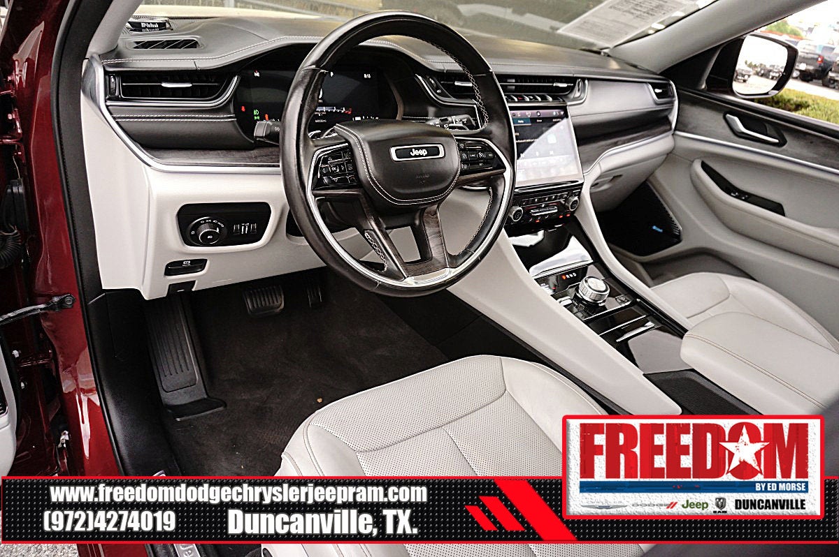 Equipped with Quick Order Package 22N, 10 Speakers, 10.1 Touchscreen Display, 19 Speakers High Performance Audio, 2nd Row 60/40 Bench w/Manual Tip/Slide, 2nd Row Seat Center Armrest/Cupholders, 3 Rear Seat Head Restraints, 3.45 Rear Axle Ratio, 3rd row seats: split-bench, 4-Wheel Disc Brakes, 7-Passenger Seating, 950 Watt Amplifier, ABS brakes, Adaptive suspension, Air Conditioning, Air Susp/Activ Damping Delete Credit, Alloy wheels, AM/FM radio: SiriusXM w/360L, Anti-whiplash front head restraints, Apple CarPlay, Apple CarPlay/Android Auto, Audio memory, Auto High-beam Headlights, Auto-dimming door mirrors, Auto-dimming Rear-View mirror, Auto-leveling suspension, Automatic temperature control, Aux Battery, Brake assist, Bumpers: body-color, Center Rear 3-Point Seat Belt, Compass, Connected Travel & Traffic Services, Connectivity - US/Canada, Delay-off headlights, Disassociated Touchscreen Display, Driver door bin, Driver vanity mirror, Dual front impact airbags, Dual front side impact airbags, Electronic Stability Control, Emergency communication system, Four wheel independent suspension, Front anti-roll bar, Front Bucket Seats, Front Center Armrest w/Storage, Front dual zone A/C, Front fog lights, Front License Plate Bracket (DISC), Front reading lights, Fully automatic headlights, Garage door transmitter, Google Android Auto, GPS Antenna Input, GPS Navigation, HD Radio, Heated door mirrors, Heated front seats, Heated rear seats, Heated steering wheel, Illuminated entry, Integrated Center Stack Radio, Integrated Voice Command w/Bluetooth®, Knee airbag, Leather steering wheel, Low tire pressure warning, Memory seat, Nappa Leather Seats, Navigation System, Normal Duty Suspension, Occupant sensing airbag, Outside temperature display, Overhead airbag, Overhead console, Panic alarm, ParkView Rear Back-Up Camera, Passenger door bin, Passenger vanity mirror, Power door mirrors, Power driver seat, Power Fold Seatbacks, Power Liftgate, Power moonroof: CommandView, Power passenger seat, Power steering, Power windows, Radio data system, Radio: Uconnect 5 Nav w/10.1 Display, Radio: Uconnect 5 Nav w/8.4 Display, Rain sensing wipers, Rear air conditioning, Rear anti-roll bar, Rear reading lights, Rear window defroster, Rear window wiper, Reclining 3rd row seat, Remote keyless entry, Roof rack: rails only, Security system, SiriusXM Satellite Radio, SiriusXM w/360L, Speed control, Speed-Sensitive Wipers, Split folding rear seat, Spoiler, Steering wheel memory, Steering wheel mounted audio controls, Tachometer, Telescoping steering wheel, Tilt steering wheel, Traction control, Trip computer, Turn signal indicator mirrors, USB Host Flip, Variably intermittent wipers, Ventilated front seats, Voltmeter, and Wheels: 20 x 8.5 Machined Face Aluminum.