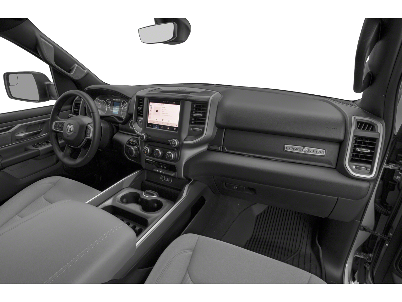 Equipped with Bed Utility Group (MOPAR 4 Adjustable Cargo Tie-Down Hooks, MOPAR Deployable Bed Step, MOPAR Spray In Bedliner, and Pick-Up Box Lighting), Big Horn Level An Equipment Group (DISC) (4G LTE Wi-Fi Hot Spot, 8.4 Touchscreen Display, Apple CarPlay, Auto-Dimming Exterior Driver Mirror, Auto-Dimming Rear-View Mirror, Black Premium Power Mirrors (GUL), Bluetooth® Handsfree Phone & Audio, Class IV Receiver Hitch, Cluster 3.5 TFT Color Display, Connectivity - US/Canada, Exterior Mirrors Courtesy Lamps, Exterior Mirrors w/Supplemental Signals, Foam Bottle Insert (Door Trim Panel), For More Info, Call 800-643-2112, Glove Box Lamp, Google Android Auto, Integrated Center Stack Radio, Power 2-Way Driver Lumbar Adjust, Power 8-Way Driver Seat, Power Adjustable Pedals, Radio: Uconnect 5 W w/8.4 Display, Rear Dome w/On/Off Switch Lamp, Rear Power Sliding Window, Rear Window Defroster, SiriusXM Radio Service, SiriusXM Satellite Radio, Sun Visors w/Illuminated Vanity Mirrors, Universal Garage Door Opener, and USB Host Flip), Quick Order Package 24R Lone Star (Regional) (Lone Star Badge), 1500 Big Horn/Lone Star, 4D Quad Cab, HEMI 5.7L V8 Multi Displacement VVT, 8-Speed Automatic, RWD, Granite Crystal Metallic Clearcoat, Black Cloth, 3 Rear Seat Head Restraints, 3.21 Rear Axle Ratio, 4 Way Front Headrests, 4-Wheel Disc Brakes, 48V Belt Starter Generator, 6 Speakers, 9 Amplified Speakers w/Subwoofer, ABS brakes, Air Conditioning, Alloy wheels, AM/FM radio, Black Exterior Mirrors, Brake assist, Bumpers: chrome, Cloth Bench Seat, Cluster 7.0 TFT Color Display, Compass, Convex Wide-Angle Mirror Insert, Delay-off headlights, Driver door bin, Dual front impact airbags, Dual front side impact airbags, Electronic Stability Control, Emergency communication system: SiriusXM Guardian, Front anti-roll bar, Front Center Armrest w/Storage, Front fog lights, Front License Plate Bracket, Front reading lights, Front Seat Back Map Pockets, Front wheel independent suspension, Fully automatic headlights, Global Telematics Box Module (TBM), GPS Antenna Input, Heated door mirrors, Illuminated entry, Integrated Voice Command w/Bluetooth®, Leather steering wheel, Low tire pressure warning, Manual Adjust 4-Way Front Passenger Seat, MOPAR Front & Rear Rubber Floor Mats, Occupant sensing airbag, Outside temperature display, Overhead airbag, Overhead console, Panic alarm, ParkView Rear Back-Up Camera, Passenger door bin, Passenger vanity mirror, Power door mirrors, Power steering, Power windows, Radio data system, Radio: Uconnect 3 w/5 Display, Rear 60/40 Folding Seat, Rear anti-roll bar, Rear seat center armrest, Rear step bumper, Remote keyless entry, Remote Start System, Speed control, Split folding rear seat, Steering wheel mounted audio controls, Tachometer, Telescoping steering wheel, Tilt steering wheel, Traction control, Trailer Brake Control, Trip computer, Variably intermittent wipers, Voltmeter, Wheels: 18 x 8 Cast-Aluminum Painted, and Wheels: 20 x 9 Aluminum Chrome Clad.