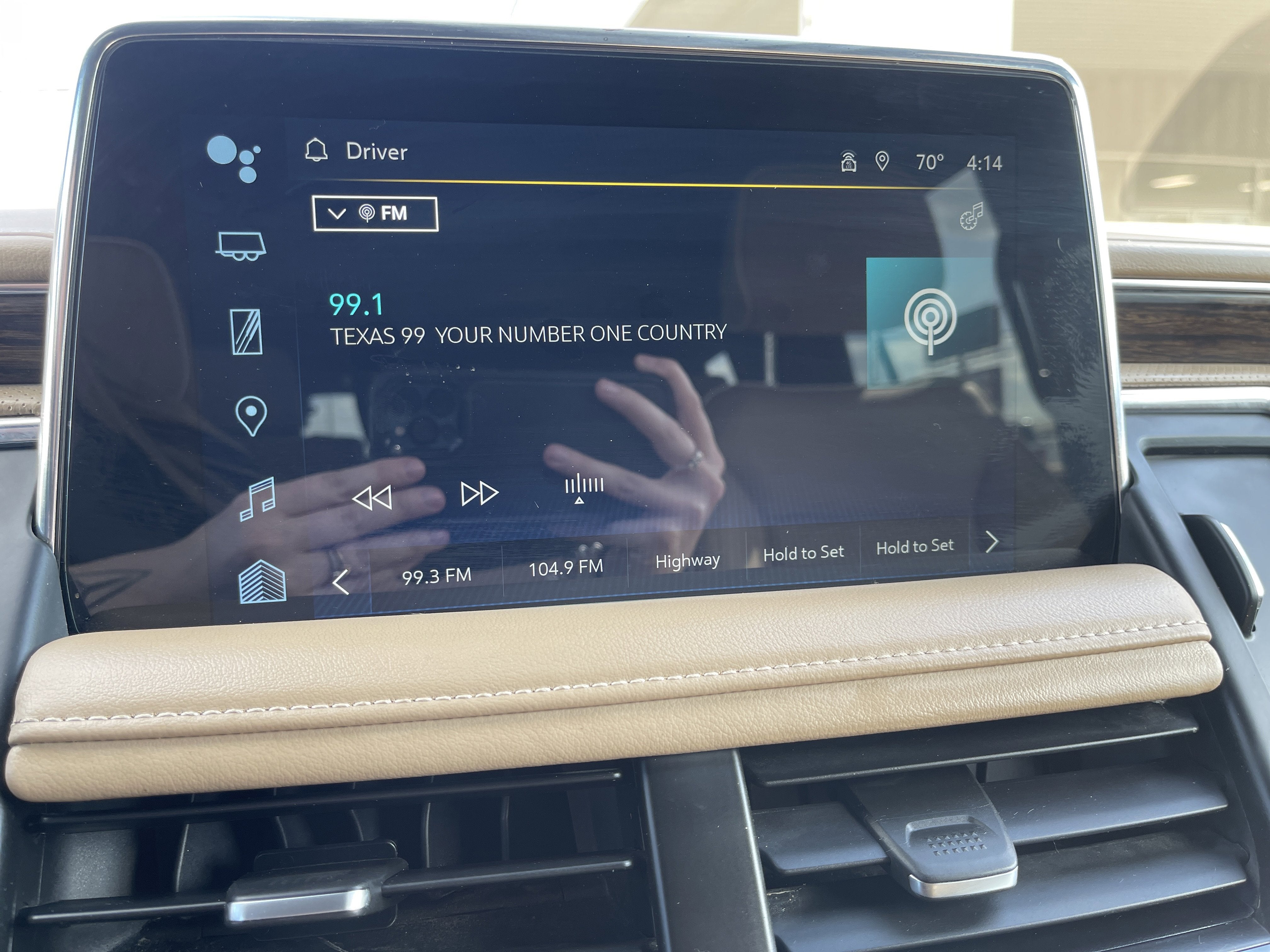 Equipped with License Plate Front Mounting Package, Preferred Equipment Group 1LZ (1st & 2nd Row Color-Keyed Carpeted Floor Mats, 3rd Row 60/40 Power-Folding Split-Bench Seat, Auto-Dimming Inside Rear-View Mirror, Bose 10-Speaker Centerpoint Surround Audio Sys Ft, Bright Front & Rear Door Sill Plates, Chrome Door Handles w/Body-Color Strip, Chrome Mirror Caps, Color-Keyed Carpeting Floor Covering, Driver & Front Outboard Passenger Airbags, Dual Exhaust System, Enhanced Driver Information Center, Floor Console, Hands-Free Rear Power Programmable Liftgate, Heated 2nd Row Outboard Seats, Heated Steering Wheel, Infotainment Display, Lane Change Alert w/Side Blind Zone Alert, LED Daytime Running Lamps, Memory Settings, Outside Heated Power-Adjustable Mirrors, Power Release 2nd Row Bucket Seats, Power Tilt & Telescopic Steering Column, Rear Cross Traffic Alert, Remote Start, Safety Alert Seat, SiriusXM Radio w/360L, Universal Home Remote, Wireless Charging, and Wrapped Steering Wheel), Texas Edition (Set of 4 Wheel Locks (LPO), Texas Edition Badging, and Wheels: 22 x 9 Polished Aluminum (RVA)), 10 Speakers, 20 x 9 Polished Aluminum Wheels, 3.23 Rear Axle Ratio, 3rd row seats: split-bench, 4-Wheel Disc Brakes, ABS brakes, Adaptive suspension, Air Conditioning, Alloy wheels, AM/FM radio: SiriusXM with 360L, Apple CarPlay/Android Auto, Auto High-beam Headlights, Auto-dimming door mirrors, Auto-dimming Rear-View mirror, Auto-leveling suspension, Automatic temperature control, Brake assist, Bumpers: body-color, Compass, Delay-off headlights, Driver door bin, Driver vanity mirror, Dual front impact airbags, Dual front side impact airbags, Dual-Pane Power Panoramic Sunroof, Electronic Stability Control, Emergency communication system: OnStar and Chevrolet connected services capable, Four wheel independent suspension, Front anti-roll bar, Front Bucket Seats, Front Center Armrest, Front dual zone A/C, Front High-Back Reclining Bucket Seats, Front reading lights, Fully automatic headlights, Garage door transmitter, Heated & Ventilated Driver & Front Passenger Seats, Heated door mirrors, Heated Driver & Front Passenger Seats, Heated front seats, Heated rear seats, Heated steering wheel, Illuminated entry, Low tire pressure warning, Magnetic Ride Control Suspension, Memory seat, Navigation System, Not Equipped w/4-Way Driver & Fr Pass Pwr Lumbar, Occupant sensing airbag, Outside temperature display, Overhead airbag, Overhead console, Panic alarm, Passenger door bin, Passenger vanity mirror, Perforated Leather Seat Trim, Power door mirrors, Power driver seat, Power Liftgate, Power passenger seat, Power steering, Power windows, Premium audio system: Chevrolet Infotainment 3 Premium, Radio: Chevrolet Infotainment 3 Premium System, Rain sensing wipers, Rear air conditioning, Rear anti-roll bar, Rear reading lights, Rear window defroster, Rear window wiper, Remote keyless entry, Roof rack: rails only, Security system, Speed control, Speed-sensing steering, Split folding rear seat, Spoiler, Steering wheel memory, Steering wheel mounted audio controls, Tachometer, Telescoping steering wheel, Tilt steering wheel, Traction