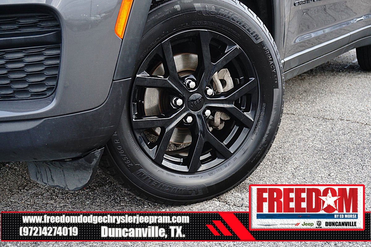 Equipped with Altitude Appearance Package, Quick Order Package 23B Altitude, Grand Cherokee Altitude, 4D Sport Utility, 3.6L V6 24V VVT, 8-Speed Automatic, 4WD, Baltic Gray Metallic Clearcoat, Global Black Artificial Leather, 115V Auxiliary Power Outlet, 3.45 Rear Axle Ratio, 4-Wheel Disc Brakes, 6 Speakers, ABS brakes, Air Conditioning, Alloy wheels, Anti-whiplash front head restraints, Automatic temperature control, Black Headliner, Brake assist, Bumpers: body-color, Capri Leatherette/Suede Seats, Cloth Seats, Compass, Delay-off headlights, Delete Laredo Badge, Driver door bin, Driver vanity mirror, Dual front impact airbags, Dual front side impact airbags, Electronic Stability Control, Emergency communication system, Four wheel independent suspension, Front anti-roll bar, Front Bucket Seats, Front Center Armrest w/Storage, Front dual zone A/C, Front License Plate Bracket, Front reading lights, Fully automatic headlights, Gloss Black Exterior Accents, Heated door mirrors, Heated Front Seats, Heated Steering Wheel, Illuminated entry, Knee airbag, Low tire pressure warning, Normal Duty Suspension, Occupant sensing airbag, Outside temperature display, Overhead airbag, Overhead console, Panic alarm, ParkView Rear Back-Up Camera, Passenger door bin, Passenger vanity mirror, Power door mirrors, Power driver seat, Power Liftgate, Power steering, Power windows, Radio data system, Radio: Uconnect 5 w/8.4 Display, Rain Sensitive Windshield Wipers, Rear anti-roll bar, Rear reading lights, Rear window defroster, Rear window wiper, Remote keyless entry, Remote Start System, Secondary Active Grille Shutters, Security system, Selectable Tire Fill Alert, Speed control, Speed-Sensitive Wipers, Split folding rear seat, Spoiler, Steering wheel mounted audio controls, Tachometer, Telescoping steering wheel, Tilt steering wheel, Traction control, Trip computer, Variably intermittent wipers, Voltmeter, Wheels: 17 x 6.5 Fully Painted Aluminum, Wheels: 18 x 8 Fully Painted Aluminum 1, and Wireless Charging Pad.