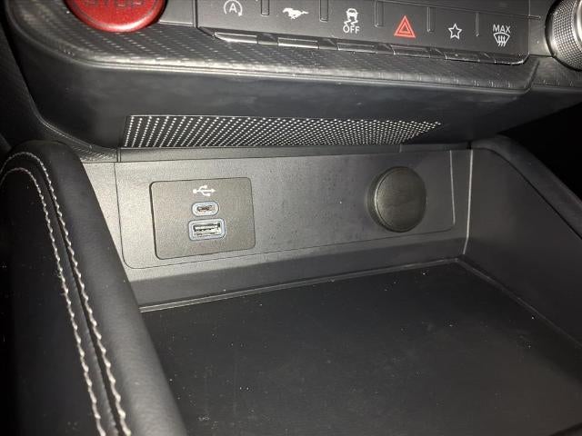 Equipped with Equipment Group 401A High Package (Illuminated Door-Sill Scuff Plates), Security Package (Locking Center Console), Mustang GT Premium, 2D Coupe, 5.0L V8 Ti-VCT, 10-Speed Automatic, RWD, Vapor Blue, Black Onyx Leather, 4-Wheel Disc Brakes, 9 Speakers, ABS brakes, Active Valve Performance Exhaust, Air Conditioning, Alloy wheels, AM/FM radio: SiriusXM with 360L, AM/FM Stereo, Auto High-beam Headlights, Auto-dimming Rear-View mirror, Automatic temperature control, Brake assist, Bumpers: body-color, Climate Controlled Heated/Cooled Front Seats, Compass, Delay-off headlights, Driver door bin, Driver vanity mirror, Dual front impact airbags, Dual front side impact airbags, Electronic Stability Control, Emergency communication system: 911 Assist, Exterior Parking Camera Rear, Four wheel independent suspension, Front anti-roll bar, Front Bucket Seats, Front Center Armrest, Front dual zone A/C, Front reading lights, Fully automatic headlights, Garage door transmitter, HD Radio, Heated door mirrors, Heated front seats, Heated steering wheel, Illuminated entry, Internet access capable: FordPass Connect, Knee airbag, Leather Shift Knob, Leather steering wheel, Leather-Trimmed Bucket Seats, Low tire pressure warning, Occupant sensing airbag, Outside temperature display, Overhead airbag, Overhead console, Panic alarm, Passenger door bin, Passenger vanity mirror, Power door mirrors, Power driver seat, Power passenger seat, Power steering, Power windows, Radio data system, Rain sensing wipers, Rear anti-roll bar, Rear Parking Sensors, Rear window defroster, Remote keyless entry, SiriusXM w/360L, Speed control, Speed-sensing steering, Speed-Sensitive Wipers, Split folding rear seat, Spoiler, Sport steering wheel, Steering wheel mounted audio controls, SYNC 4, Tachometer, Telescoping steering wheel, Tilt steering wheel, Traction control, Trip computer, Turn signal indicator mirrors, Variably intermittent wipers, Ventilated front seats, Voltmeter, and Wheels: 19 x 8.5 Shadow Silver-Painted Aluminum.