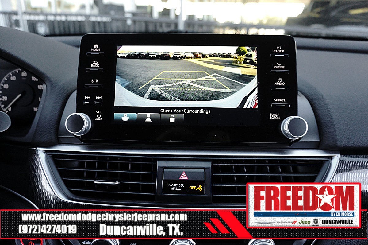 Equipped with Accord Hybrid Sport, 4D Sedan, 2.0L 4-Cylinder DOHC 16V i-VTEC, eCVT, FWD, White, 4-Wheel Disc Brakes, 8 Speakers, ABS brakes, Adaptive Cruise Control: Adaptive Cruise Control (ACC) with Low-Speed Follow, Air Conditioning, Alloy wheels, AM/FM radio: SiriusXM, Apple CarPlay/Android Auto, Auto High-beam Headlights, Automatic temperature control, Brake assist, Bumpers: body-color, Delay-off headlights, Driver door bin, Driver vanity mirror, Dual front impact airbags, Dual front side impact airbags, Electronic Stability Control, Emergency communication system: HondaLink, Exterior Parking Camera Rear, Fabric w/Synthetic Leather Seat Trim, Forward collision: Collision Mitigation Braking System (CMBS) + FCW mitigation, Four wheel independent suspension, Front anti-roll bar, Front Bucket Seats, Front Center Armrest, Front dual zone A/C, Front fog lights, Front reading lights, Fully automatic headlights, Heated door mirrors, Illuminated entry, Knee airbag, Lane Departure Warning System, Leather steering wheel, Low tire pressure warning, Occupant sensing airbag, Outside temperature display, Overhead airbag, Overhead console, Panic alarm, Passenger door bin, Passenger vanity mirror, Power door mirrors, Power driver seat, Power steering, Power windows, Radio data system, Radio: 180-Watt HD Audio System, Rear anti-roll bar, Rear seat center armrest, Rear window defroster, Remote keyless entry, Security system, Speed control, Speed-sensing steering, Speed-Sensitive Wipers, Split folding rear seat, Steering wheel mounted audio controls, Telescoping steering wheel, Tilt steering wheel, Traction control, Trip computer, Variably intermittent wipers, and Wheels: 19 Machine-Finished Alloy w/Black Inserts.